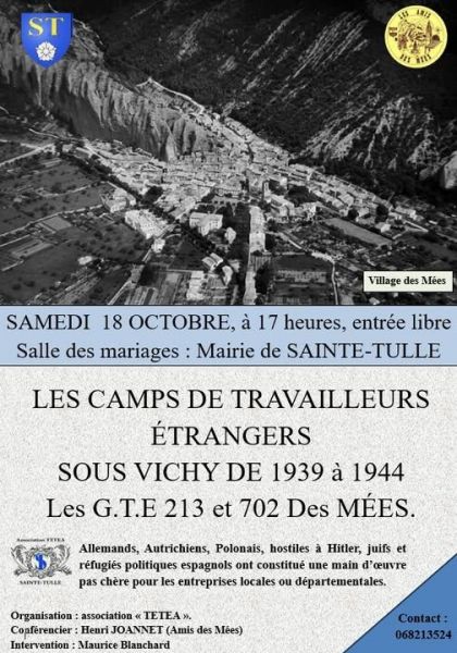 Au cours de la deuxième guerre mondiale, le village des Mées a accueilli les GTE 213 et 702. Leurs éléments, Allemands, Sarrois et Autrichiens hostiles à Hitler, Espagnols réfugiés de la guerre civile, Polonais, Luxembourgeois… ont constitué une main d’œuvre pour l’usine de Saint-Auban, les mines de lignite du département, les exploitants forestiers et les entreprises.